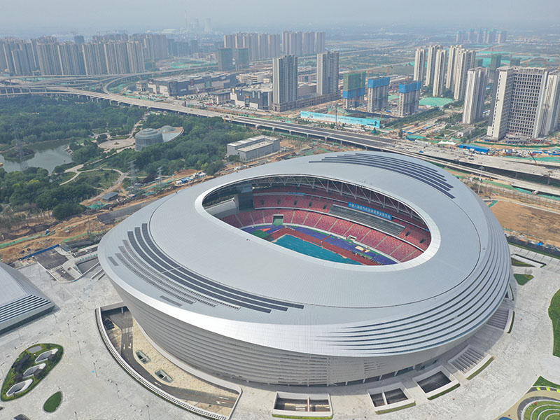 工程介紹:鄭州奧林匹克體育中心項目位于河南省鄭州市,總建筑面積為57萬平方米。采用全球**跨徑,**懸挑的大開口車幅式索承網(wǎng)格結(jié)構(gòu),設(shè)計**跨徑311米,**懸挑54.1米。其中,環(huán)向密封拉索直徑為130毫米,單個索夾重達(dá)6.5噸。